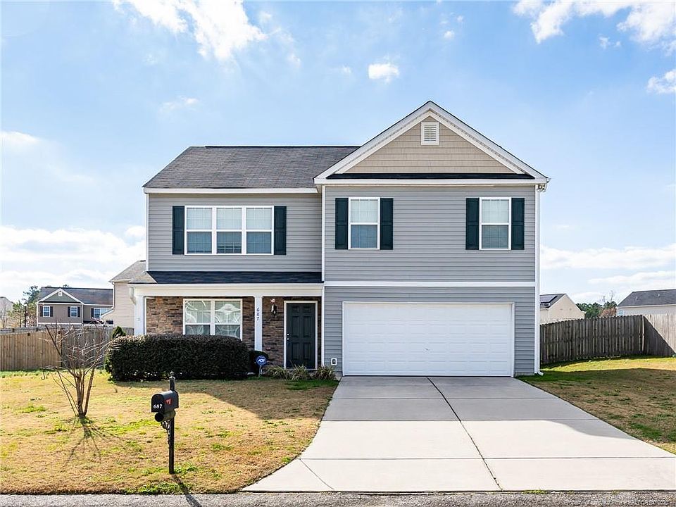 Fenced-in back yard, community pool, fitness center and gym all this within a short drive from Fort Bragg: this is a must see! This impressive open floor plan home has a formal dining room, large eat-in kitchen opens to a large family room, and an office/study on the first floor. Upstairs you will find the spacious primary suite with large walk-in closet, dual vanities, deep garden tub, and separate shower. Three additional bright and sunny bedrooms, a full bath, and large laundry room complete the second floor. The rear patio is perfect for outdoor entertaining. Amazing country feel that offers a perfect mix of close, yet breathable distance away from just about anywhere you want to be. Schedule your showing today!