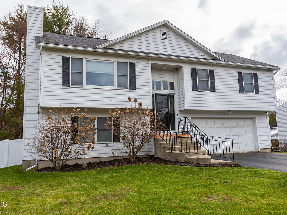 Welcome home to this beautifully updated 3-bedroom, 3-bathroom Raised Ranch in sought after Southeast neighborhood. Move-in ready, this charming abode boasts spacious rooms, wood burning fireplace, granite counters, large deck and patio, fenced yard with a private wooded area beyond offering a firepit, privacy and 12' x 12' shed. Enjoy the convenience of a paved driveway leading to an oversized 2-car garage perfect for your vehicles and storage needs. First showing will be on April 23 at the open house from 4-5:30. Don't miss out on the opportunity to make this your dream home! Surveillance equipment on property.