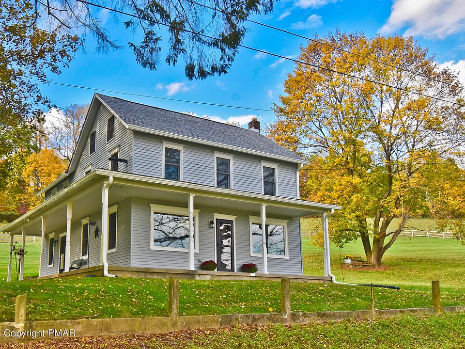 3bd/2ba Farmhouse w/ BREATHTAKING MOUNTAIN VIEWS! Imagine waking up to the crisp morning air, sipping coffee on the porch, while being mesmerized by the awe-inspiring panorama view. The Living Room flows into a bar room, perfect for indoor entertainment. NEWLY UPDATED Kitchen has stone counters & custom cabinets. A barn door leads to a LARGE Laundry Room & full bth. Upstairs has 3 bds, den, & bath. This home also has WALKUP ATTIC & basement for storage, unique cast iron baseboards on 1st floor, newer roof, & smart tech exterior lighting. 2.2+ ACRES to take a refreshing dip in the ABOVE-GROUND POOL, host gatherings, or simply relish the tranquility of your surroundings. Located near major highways, this home offers easy access to Lehigh Valley area & other attractions in the Poconos. Whether you're seeking a serene retreat or a place to entertain and make memories, this home w/ its mesmerizing mountain views is perfect. CALL TODAY!