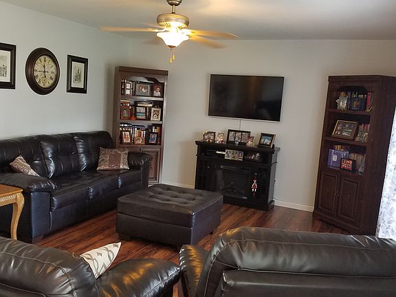 This 1,498 sqft ranch home offers 3 bedrooms, one full bath and one ¾ bath. The living room has recently installed wood laminate flooring. The kitchen and dining area share a large open floor plan with an island, a pantry and ample cabinet space. The master bedroom has a double sided walk in closet and an in suite ¾ bath. The over sized laundry room also contains a double sided walk in closet and provides access to both the back deck and the 2 car garage. A second family room has been finished in the walk out basement. The unfinished area of the basement has roughed in plumbing for future finishing work. Built in 2005, this brick fronted home sits on a 1/3-acre lot providing a spacious yard, bordered by streets on both the front and back of the lot.