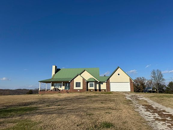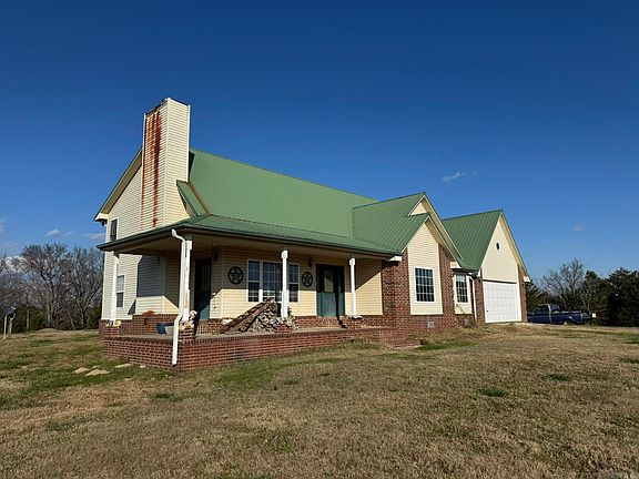 Sitting on 21 acres in Lunenburg, Arkansas, this charming 2,260 square foot, 4-bedroom, 3-bathroom home has a unique yet functional downstairs layout. The heart of the home is the kitchen, featuring original hardwood cabinets and large windows that enhance the view of the front yard. The master suite offers seamless access to the master bath, a spacious walk-in closet, and the laundry room, creating a convenient flow that continues to the guest bathroom and another bedroom. This design wraps around and leads back to the living room, enhancing the home's open and connected feel. The upstairs of the home also includes an open loft, a bedroom, a second living room or bedroom, and its own bathroom. The property includes a picturesque front porch view, a balcony, and a back deck accessible from both levels, perfect for enjoying the serene views and natural beauty surrounding the home. Listed for $329,900.