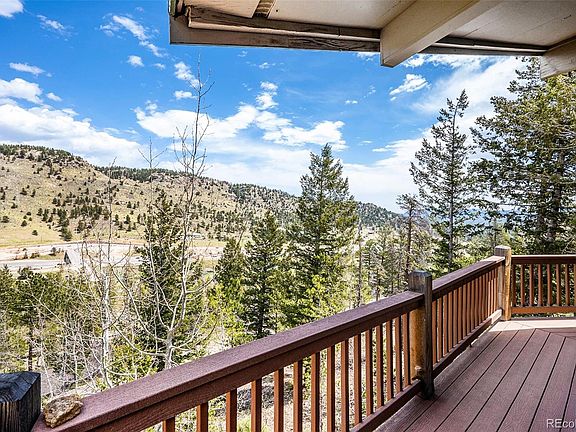 Welcome home to your mountain get-away that is perfectly perched on the picturesque foothills of Evergreen, Colorado. This incredible home offers unobstructed panoramic mountain views from nearly every large floor to ceiling window and every seat on the extended wrap-around wood deck. Just minutes from I-70, this amazing property is tucked into the hillside, surrounded by towering pine tress, and in peaceful seclusion. This home lives much larger than the sq.ft. would show. The spacious and open family room greets you with soaring vaulted ceilings, cozy wood burning fireplace with custom tile surround, and plenty of windows that flood the home with natural light and perfectly frame the outdoor splendor. The nicely upgraded kitchen includes all stainless appliances, bright white cabinets, and extended wood grained vinyl flooring. The main floor is complete with two bedrooms and a full bathroom. The lower level is equally impressive. Enjoy the large recreation room that is perfect for fun family activities, a third bedroom, and an additional bathroom with shower enclosure. The garage has been enclosed to add additional flex space that can be completely finished to add quality living space, returned to a garage, or to simply use as convenient storage. Don't miss the large laundry area complete with washer & dryer. The expansive second level deck was built for entertaining. Enjoy summer BBQ's or simply relax and enjoy the beauty of nature. Just minutes to downtown Evergreen, or an easy commute to Denver via I-70. Hurry, this one won't last!!!