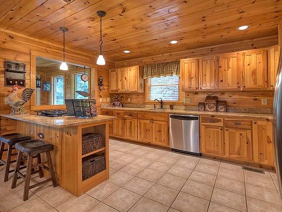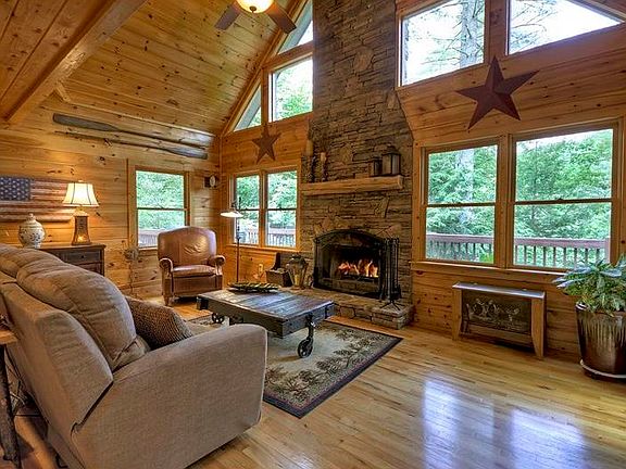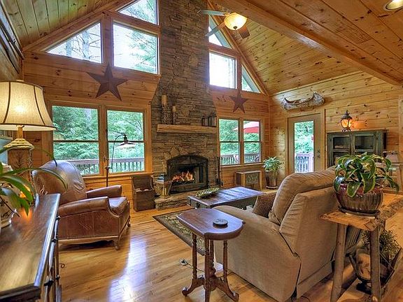Charming 3BR/3.5BA cabin overlooking the cascading waters of the Cartecay River. Perfectly situated on 1.77 PRIVATE acres, you will enjoy seeing & hearing the river from the lg deck. Entering the cabin you are greeted by slate tile foyer opening to living area w/stack stone fireplace flanked by lg windows; Fantastic kitchen w/granite counters, SS appliances, plentiful cabinets & opens to lovely sunroom. Master Suite & laundry on main / Upper level has loft, 2 bedrooms & lg bath w/double vanity. Full finished basement w/super size family room plus bath & workshop area. 10/07/16