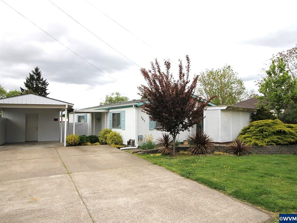 This pit set Skyline 28'x40' manufactured home, on a fenced residential lot is just waiting for your buyer. vaulted ceilings and open layout. Sliding door leading covered deck off the dining room makes barbequing a snap. Very light and bright with a breakfast bar and skylight in kitchen. Tuff shed 10x10 and additional shed for storage at the end of the carport. Gas furnace and water heater, AC. First American Home Warranty $475 Value Plus.