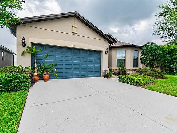 Charming home located in the desirable community of Trillium Village! This property features 3 bedrooms, 2 bathrooms and a 2 car garage. TONS of builder UPGRADES inside... hard wood floors in the living room, extended garage with epoxy floors, indoor laundry room and water softener in garage. Oversized wood cabinets in kitchen with upgraded granite countertops with stainless appliances and garbage disposal. Upgraded granite in both bathrooms, and all rooms have walk in closets. Large backyard space is ready for a pool and has vinyl fencing around the perimeter. The Sellers added on a porch upgrade off the back for added outdoor entertainment space. Community features a luxury resort style ZERO ENTRY pool, a large clubhouse, playground and recreation fields with tons of parking. Low monthly HOA, and the glitz and glam of a well-maintained community. Minutes from the bike trail and the Suncoast Parkway, to get to anywhere you may need to be. Publix is just a short 8 minute drive. Do not miss out on this beautiful home, schedule your showing now!