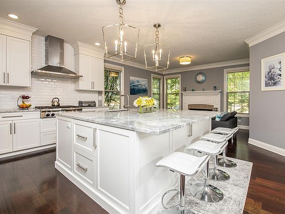 SUCH A PRETTY HOME !! OPEN FLOOR PLAN WITH ESPRESSO STAINED CHERRY HARDWOOD FLOORS, STUNNING NEW KITCHEN W/ HUGE CENTER ISLAND TONS OF WHITE CABINETRY W/ SOFT CLOSE DRAWERS AND PULL OUTS, GORGEOUS LIGHTING, HIGH END STAINLESS APPLIANCES AND 6 BURNER COOKTOP, OPEN TO SUNROOM AND HEARTH ROOM W/ STONE FIREPLACE. DRAMATIC STAIRCASE TO UPPER LEVEL W/ DELUXE MASTER SUITE, LARGE WALK-IN SHOWER PLUS JACUZZI TUB, DBL VANITY AND WALK-IN CLOSET. 2ND FLOOR LAUNDRY IS A DELIGHT IN ADDITION TO MUDROOM ON MAIN FLOOR. LOWER LEVEL HAS MEDIA AREA AND OFFICE (CURRENTLY USED AS 5TH BDR) PLUS FULL BATH. FANTASTIC LANDSCAPING W/ IRRIGATION SYSTEM, PATIO AND FULLY FENCED PRIVATE BACKYARD WITH PRIVATE LAND BEHIND HOME AND CONSERVATION AREA ACROSS STREET WITH WALKING PATHS. BOONE COUNTY SCHOOLS, CITY WATER/SEWER, CONVENIENT TO INTERSTATE AND AMENITIES