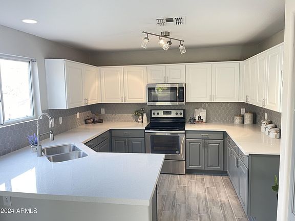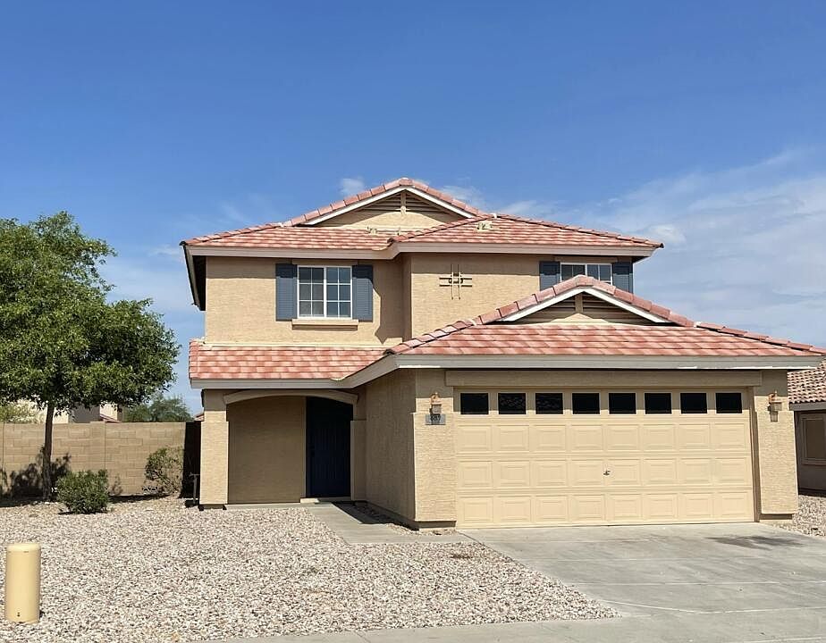 Beautifully updated home in the center of Sundance. 4 bedroom 2 bath with a large family room upstairs. This home has a large landscaped backyard and a beautiful park around the corner. Only a few minutes away from the large shopping center on Watson Road and from the new coming shopping center in Verrado! Its conveniently located just 4 minutes from the I-10 freeway as well. The kitchen has quartz countertops, backsplash, refinished two-tone cabinets and stainless steel appliances. All flooring throughout the entire house was replaced in 2021. There is brand new interior paint throughout the entire house and the exterior was painted in 2020. Water heater was replaced with a new one in 2020 as well. Has a wide enough lot to put in an RV gate!!