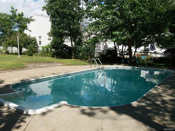 Adorable 3 bedroom cape in great neighborhood. New carpets through out, newer vinyl windows, Brand new tear off roof, new vanity, light fixture and mirror cabinet in full bath, large second floor bedroom with extra area off bedroom that could be computer room, sitting area etc., steel front door, 1.5 car garage with shed and attached covered patio which leads to a fantastic in-ground pool and large fully fenced yard. There is nothing to do but move right in and enjoy this maintenance free affordable house with a fantastic party yard with all the I wants.....