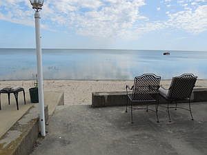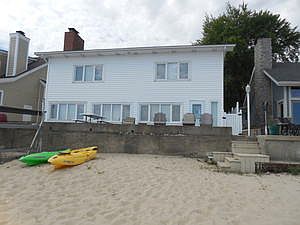 Sandy Beach front property-Enjoy colorful sunrises from this 4 bedroom 3000 sq. ft. vacation or YEAR-AROUND home that features an open floor plan, updated kitchen including new appliances and granite counter tops, dining room with bay window, 3 fireplaces, central air, large patio and deck, city water, garage with extra storage, fenced in yard, boat hoist, and more. Enjoy nature, bike paths, walking on the beach, fantastic views, beautiful sunrises and a lifetime of memories for you and your family.