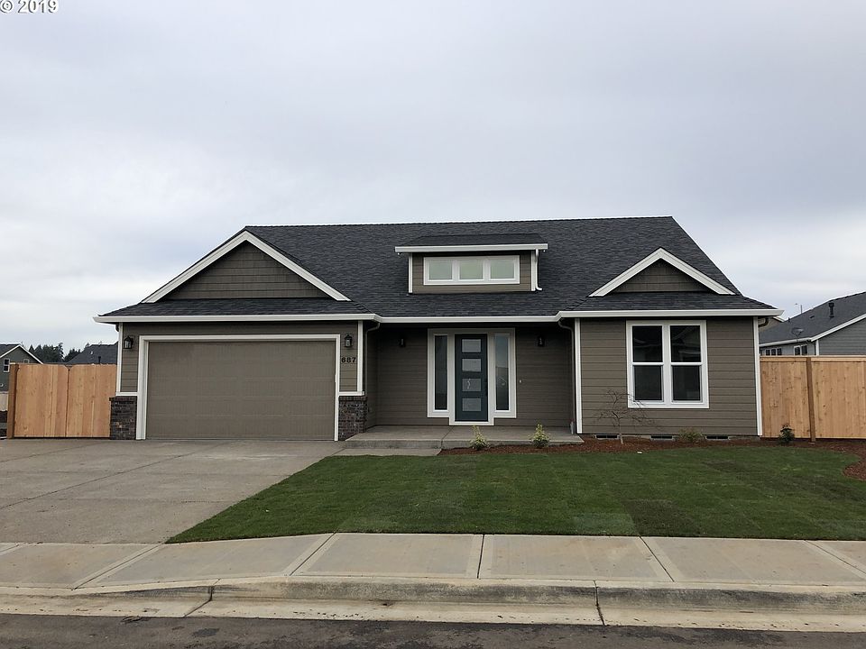 Model home...brand new construction completed by MC Northwest, Inc. Single level living on huge lot. Granite counters throughout. Custom cabinets & SS appliances. Walk-in pantry. Wood wrapped windows. Huge laundry room. Tile shower with swinging glass door in master suite. Gas fireplace. Covered patio. Landscaped front yard w/irrigation. Fully fenced. A/C. Two car tandem garage. Photos are actual.
