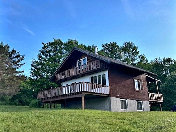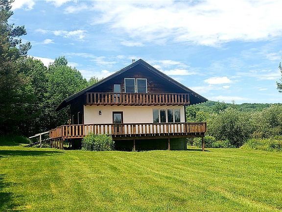 This stunning 3 BR, 1.5 BA European-inspired chalet is set on over 4 level acres with breathtaking year-round mountain views. Located minutes from Stamford, NY, offering grocery, pharmacy, restaurants, and cafes, this 1990-built home blends rustic charm with modern convenience and has only been on the market once.