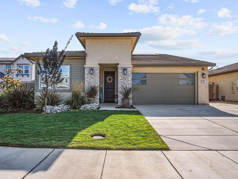 Hard to find single story in a desirable area on a court! Move in ready 3 bedrooms & 2 baths with 1964sf. Open floor plan with a great room concept with kitchen, dining and living room. The kitchen features an island with a farmhouse sink & custom kitchen faucet. The kitchen has beautiful quartz counters, black hardware, diamond mosaic tile backsplash, painted cabinets, and stainless-steel appliances. Living room features large windows, with a double glass slider to let in lots of natural lighting, gas fireplace with two built in alcoves on either side. This prestigious home features tile roof, stone veneer, stucco, and siding. Vinyl plank wood flooring throughout the hallways and great room. There is an optional potential 4th bedroom with double doors that could be used for a playroom, office or game room! The bedrooms feature carpet. The master suite has a walk-in closet, double vanities, a sunk tub, separate shower with quartz counters/walls, and herringbone tile floors. There is paid off solar panels. Possible boat/trailer storage on the side of the home. Backyard has a built-in covered patio. There is a pergola with custom concrete. Fully landscaped! Located in Fair Oaks Elementary School zoning map, which is highly sought after! Call for your appt to view.