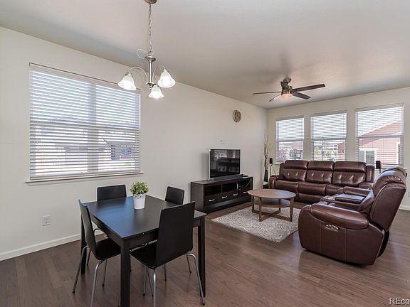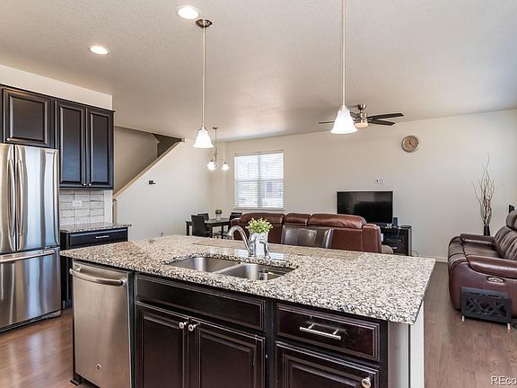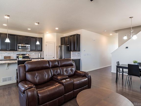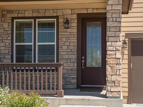 Bright & beautiful Shire model in Palisade Park located directly across the street from the neighborhood park and is loaded with amazing features. Boasting a beautiful open floor plan, the kitchen is highlighted by Espresso maple cabinets, Upgraded BackSplash, stainless steel appliances including gas range, granite countertops, walk-in pantry and oak wood flooring throughout a majority of the main level. Upstairs you'll find a large loft, convenient laundry room and 4 bedrooms including the master suite. Other great details include central air conditioning, full unfinished basement, exterior door from the garage and a contemporary exterior complete with rear covered patio. Relax under the covered Patio in Summer and Kids can play in the neighborhood park right across the home. Enjoyable South Facing Corner Lot where Snow Melts very Fast. Easy and fast access to I25 and Denver. Buyer and Buyer's agent to verify all information related to this property whether it is in MLS or not.