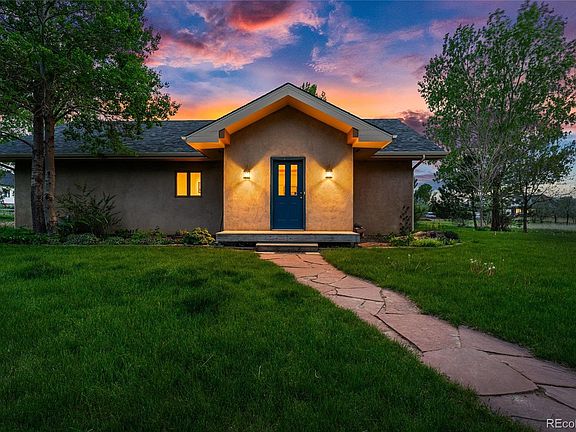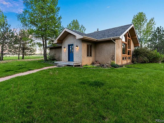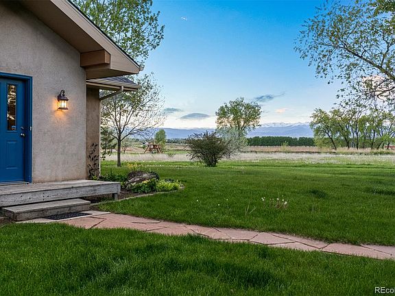 Welcome to your private sanctuary! This meticulously maintained home nestled on 17 secluded acres, offers breathtaking panoramic views, gaze out across the valley of Boulder Creek, watch foothills rise into the Rocky Mountains, and let your eyes meet the majestic Continental Divide. Two natural irrigation ditches border the property, adding a touch of tranquility and fostering the abundant life. This thoughtfully designed 2,700 sq ft, three bedroom, two bathroom ranch home prioritizes both efficiency and connection with nature. Large windows harness passive solar energy from the south, while native sandstone walls act as thermal mass. A stunning zero-joint buff sandstone surround, quarried locally, complements the TempCast masonry heater. The heart of the home boasts a stunning kitchen peninsula with a gas range, handcrafted from native juniper by a Taos artist. Complementing the warmth of the juniper, Towering spruce logs form the majestic framework of the great room. The main floor caters to relaxation with a primary suite boasting its own full bathroom. Descend the custom iron staircase and discover a whole new world in the walkout basement. Here, you'll find two additional bedrooms, a bathroom, and a large flex space perfect for whatever your heart desires. A large pond with a sandy beach beckons, perfect for weekend fishing adventures or delightful BBQ gatherings under the open sky. . You'll also discover a spacious 24x48 workshop, complete with 220V. The workshop even has rough-ins for a future bathroom, making it a versatile space, and for those with a green thumb, there's a fully functional 24x22 greenhouse. Plus, with included water share (1), you'll have a reliable source of water to keep your workshop projects running smoothly. Unsurpassed location close to I-25, Boulder, Longmont, Erie rec center and schools. Near miles of open space trails, shopping, restaurants, downtown, and situated within the highly acclaimed St. Vrain Valley school district.