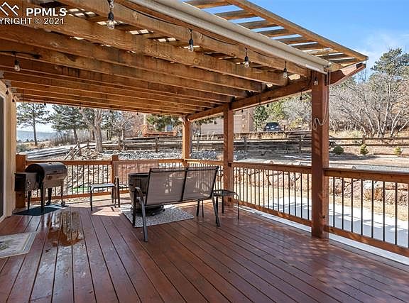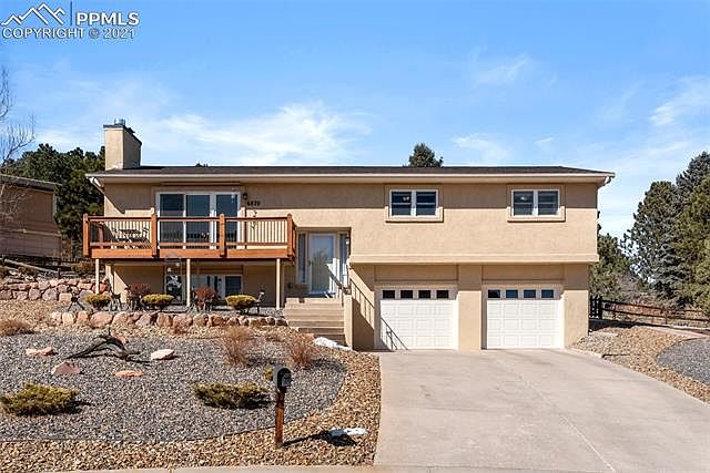 Wow! Come check out this beautiful Rockrimmon home located on a quiet cul de sac that backs to a gorgeous, treed hillside common area. The home is located at the end of the cul de sac on a .30 acre lot that provides privacy and good mountain views. This nicely updated home has stucco siding, air-conditioning, new Lenox HVAC system with bluetooth capabilities. 2 fireplaces, solid-surface kitchen and bath counters, beautiful wood and wood laminate flooring, remodeled master and hallway baths, and 2 decks. The rear deck is 12 x 20 with a pergola. Enjoy your morning coffee or evening libations while enjoying the views of the common area and local wildlife. The front deck is 4 x 20 and great for watching the evening sunset. The Rockrimmon area boasts of many walking trails and the Santa Fe Trail is just a few minutes away from the house. The sellers have recently finished painting the interior and had the stucco painted. There is a brand new water feature in the backyard to enjoy along with the beautiful flower gardens. Feel secure with the SimpliSafe security system equipment installed. (Buyer to set up their own monitoring). The large, over-sized garage and hidden nooks provide plenty of storage throughout the home. Newer lights, carpet and appliances. Easy access to I-25 and minutes away from Ute Valley Park, District 20 Schools, and all Colorado Springs attractions.