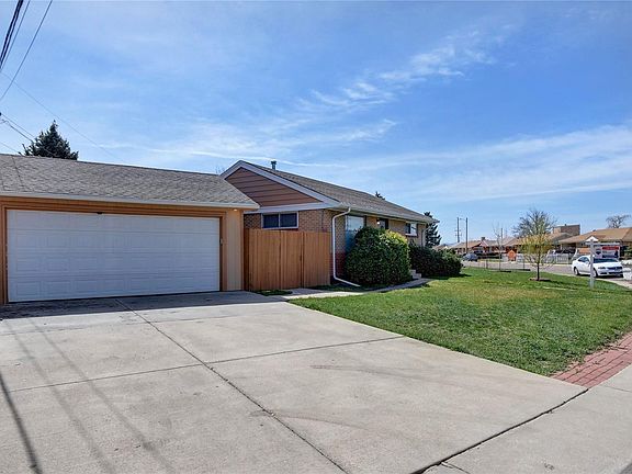 Charming brick ranch home in Perl Mack Manor neighborhood, located on a spacious corner lot. This home features 3 bedrooms and 2 bathrooms, and an addition that sets it apart from the other homes in the area. The oversized detached 2 car garage is also a great addition allowing you plenty of street parking and covered parking. NO HOA or restrictions. Stainless steel appliances in the kitchen, this home also includes the washer and dryer, newer roof, and newer water heater. Finished basement with a flex room, two bedrooms, bathroom, and the laundry room. Minutes away from from I-25, I-76 and US-36 access. The D Line light rail is just minutes away with easy access to the city. Close to the new Midtown shopping center, schools, and dog park. The PERFECT starter home! This one will not last, come take a look today!
