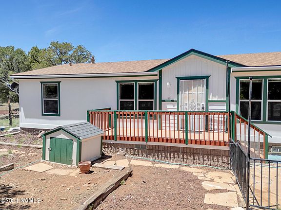 Welcome to the charming home of 6870 N Santa Fe. Affordably priced, this house features vaulted ceilings, spacious eat in kitchen, split floor plan, large primary bedroom with an en-suite bath! Situated on just over an acre populated with a mixture of Juniper and Ponderosa Pines. Enjoy the cool mountain evenings on the front deck. Or watch the famous Grand Canyon Train go by just beyond the backyard. This adorable home would make an excellent starter home or easy get away spot in the mountains of Williams.