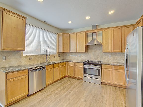 Built in 2005, this Aurora two-story offers a fireplace, stainless steel appliances, granite kitchen countertops, and a two-car garage. Upgraded features include new carpet, and new LVP and laminate flooring. A community pool, clubhouse, tennis courts, park, and trails are part of the HOA.