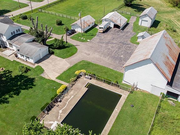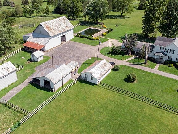 Horse lovers take note! Charming turn of the century farm house w/ generous room sizes situated on 6 acs. 10 stall barn w/ ample hay storage, outdoor sand arena to reclaim, several workshop/storage buildings that are perfect for any hobbyist. Natural woodwork & hardwood floors! Attd 2 car garage & HUGE pool!