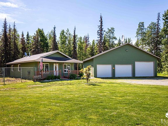 Alaskan dream with almost 1600 sq ft of shop space! 3 bed/2 bath home with tiled showers and upgraded flooring throughout. New furnace, new paint and ready for it's new owners. Granite in both bathrooms and brand new Corian kitchen counters. Half bath & shelving in garage. Nice large yard for entertaining. Deck off of master suite & wired for possible hot tub.