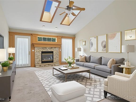 Tucked away in highly sought after Auburn Hills Subdivision, one of Concord Township's most serene neighborhoods, this 3 bdrm, 2 bath ranch condo combines sophistication, comfort, and privacy. Surrounded by mature trees & natural beauty, this residence offers the feel of a private retreat while still being close to the amenities. Step inside through the inviting front entryway & be greeted by the formal dining room, enhanced by hdwd floors & an open sightline into the kitchen. The kitchen is designed to impress with timeless white cabinetry, striking black granite counters, a breakfast bar and a seamless connection to the vaulted great room. Here, soaring ceilings, skylights beaming in natural light, and a beautiful stone fireplace create an airy yet cozy atmosphere. Head out from the great room to the elevated deck, where you can enjoy peaceful views of the rolling wooded surroundings. The primary suite is a luxurious escape featuring vaulted ceilings, private access to the deck, and a spa-inspired glamour bath. Indulge in the soaking tub, enjoy the natural light from the glass block window, or refresh in the separate shower. A double vanity with granite counters adds both elegance and function. Two additional bedrooms provide versatility for family, guests, or a home office, and they share a beautifully appointed full bath with coordinating upscale finishes. The laundry room, conveniently located off the entry, includes cabinetry, shelving, and a utility sink adding thoughtful practicality. The full walk-out basement expands the living space with finished walls, pristine concrete floors, and sliding doors that open to a private patio. Whether envisioned as an entertainment area, fitness studio, or workshop, this space is brimming with potential. Plus a spacious 2-car garage, a meticulously maintained interior, and the tranquility of a quiet wooded setting. This condo offers a rare opportunity to own a luxurious retreat in a coveted location!
