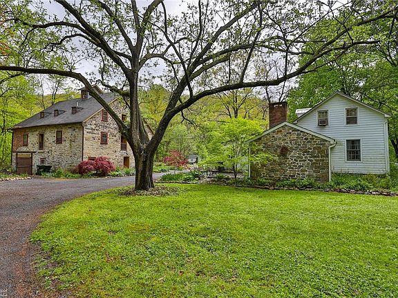 TWO HOMES nestled along beautiful Martins Creek surrounded by 15 acres of trees & lots of fresh air. Main house originally a Grist Mill, built in 1749 by James Martin, founder of Martins Creek, & alongside the Miller's cottage. Mill was converted in 1960, to a spacious 3 story home, offering open floor plan, 6 bedrooms & 4 Bathrooms. Original wood details showcased throughout. 1st floor offers a gorgeous primary suite, w/ kitchenette & new bathroom, uniquely finished w/ slate stones handpicked from the property. Bonus rm & laundry/mud rm complete the 1st Fl. 2nd Fl features large open LR/DR with pellet stove & lounge deck to enjoy the trickling creek below, along w/ country kitchen and 2nd en suite BR. 3rd level offers 4 more BR, 2 BA, and small office. Millers Cottage is ideal for RENTAL INCOME! Large kitchen, DR & LR, original fireplace, laundry & bath all on 1st fl; 2 Bedrooms & bath upstairs. This peaceful getaway is 15 mins to Easton, 1.5 hrs to NYC & Philly.