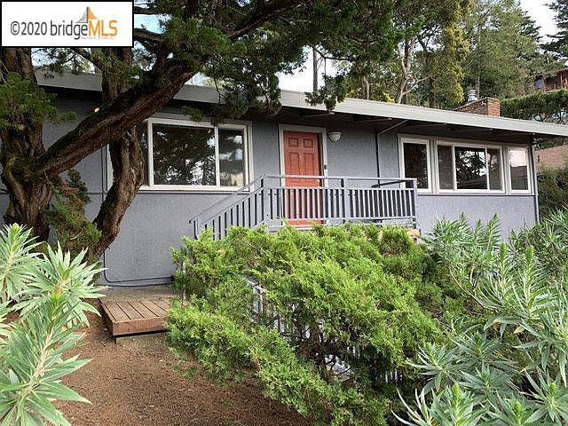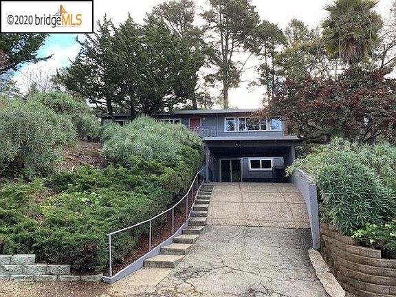 Mid-century three plus bedrm, three bath home in desirable Montclair Hills of Oakland. This home is sited above the street on a large 10,000+ square foot lot providing sunny outlooks and Bay views with lovely features: hardwood floors, dramatic cathedral ceilings, open floor plan with easy inside to outside flow. The main level contains a dramatic open living room with a gas insert fireplace. There's a spacious dining area w glass doors to sunny back yard. The eat-in kitchen levels out to the yard. Also on this level are three bedrooms including master suite with a steam shower and a second hallway bath. There is a lower level family room or guest quarters with a spacious full bath, laundry room and ample storage. The back yard is a large level patio w a water feature, and a gentle sloping grassy knoll. This home is near Montclair Village, East Bay Regional Parks hiking trails with easy access to local highways. Ten minute drive to BART