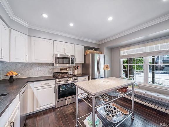 Nestled within the sought-after Sturbridge community, this hidden gem offers a modern and elegant living experience. Immaculately kept and thoughtfully designed, this townhome boasts 3 bedrooms, 2 bathrooms, and a total of 1944 square feet and provides a sophisticated and comfortable retreat. Upon arrival, you are welcomed by two-story ceilings, elegant wood flooring, and fully renovated areas that create a warm and inviting atmosphere. The kitchen is a culinary delight, showcasing Samsung stainless steel appliances, a gas range, honed granite countertops, and a mosaic marble backsplash, blending together seamlessly to craft an inspiring culinary environment. The open plan living spaces also include an updated powder room, dining area and a spacious yet cozy family room with a wood-burning fireplace. Throughout the home, designer lighting fixtures from Circa lighting exude a contemporary elegance, while custom window treatments and blackout shades in the bedrooms offer privacy and tranquility. New windows and doors infuse the interior with natural light, enhancing the inviting atmosphere. Two spacious bedrooms await you upstairs. You will enjoy the timeless allure of Italian Carrara tile and high-end fixtures in the updated and remodeled bathroom and vanity areas creating a spa-like ambiance. The basement hosts an additional bedroom (which is currently being used as an office), ample storage space and a laundry area. The outdoor space is equally inviting, with a newer patio slab providing a serene setting for relaxation and outdoor entertaining. The residence features a 2-car detached garage, ideal for extra storage. HOA amenities include community pool and tennis/pickle ball courts. This home combines modern sophistication with timeless elegance, promising a refined living experience in a sought-after community. Discover the pinnacle of contemporary luxury at 6872 East Briarwood Drive.