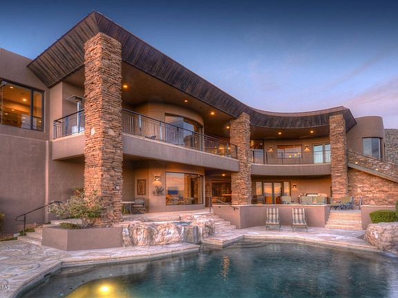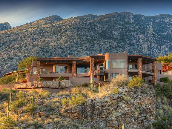 TOP OF THE WORLD VIEWS From This 2002 Masonry Built, Contemporary Home in Coveted Ventana Canyon Mountain Estates. 4 Bedroom & 7 Bathrooms - 6800 Sq Ft - This Luxurious Home Features Fine Finishes Throughout Including Wood & Flagstone Floors, Granite Counter Tops, Stone Fireplace & Wood Ceilings. Other Features Include Floor To Ceiling Picture Windows, Master Suite w/Fireplace, 3 En Suite Guest Rooms and a 5th Guest Room or Executive Office. Spacious Game/Media Room w/ Bar & Walk In Wine Room, 3 Car Garage & Golf Cart Garage, Covered Balconies & Ultra Private Over Sized Outdoor Living Space w/John Stropko Designed Pool & Spa, Covered Dining Area, Fireplace & Unmatched Golf Course, City & Mountain Views! By Far The Best Views Currently Available in Ventana Canyon Mountain Estates!!