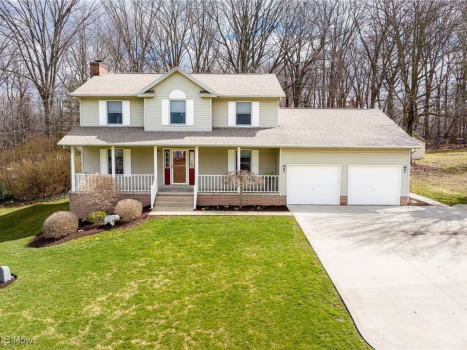 This stunning two-story Colonial in Jackson offers the perfect blend of classic charm and modern convenience, featuring four spacious bedrooms and two and a half baths. A large front porch welcomes you home, overlooking a beautifully landscaped front yard and plenty of space to enjoy the outdoors. Inside, the foyer includes a sizable closet for added storage. Just off the entrance, a dining room provides a setting for formal gatherings. The expansive great room is bathed in natural light from numerous windows and features a striking brick facade gas fireplace, creating a warm and inviting atmosphere. The eat-in kitchen is the perfect space to entertain, boasting a beautiful stone backsplash, a large mobile island, abundant cabinetry, multiple pantries, and generous counter space. A conveniently located half bath and a laundry room with built-in cabinets and a utility sink sit just across from the tandem three-car garage. Upstairs, the luxurious master suite offers a retreat-like atmosphere, while the ensuite bath impresses with a garden tub, a dual sink vanity, a spacious walk-in shower, and a 4x9 walk-in closet. Three additional bedrooms offer ample closet space and a second full bath features a vanity sink and a shower-tub combo for added convenience. The finished basement offers two versatile rooms and a large entertainment area featuring a cozy corner fireplace. A dedicated utility room ensures plenty of storage and workspace. The backyard is a private, wooded retreat, featuring a spacious back deck that steps down onto a cement pad, ideal for gatherings or relaxing in nature. With a home warranty included for the buyer’s peace of mind, this exceptional home is a must-see!