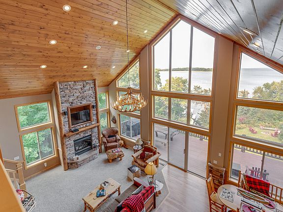 This lake lodge estate can be described as one of the most beautiful and breathtaking views on Leech lake. From the deck you can see 3 of the islands on the big lake. The location is one of the most southern-most points of Leech and its a protected bay with hard sand bottom. The property is a short drive off of highway 200 and very private, but you can paddle board to restaurants and resorts. The lake deck sits over a bubbling natural spring that makes Spring Hill Lodge a perfect name. The Lodge design was professionally decorated and some of the most talented craftsmen in northern Minnesota contributed to this true north woods estate setting. Plum trees, grape vines and wild berries surround the property. Come experience what this lake home has to offer with million dollar views right when you walk in the front door.