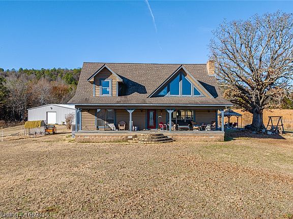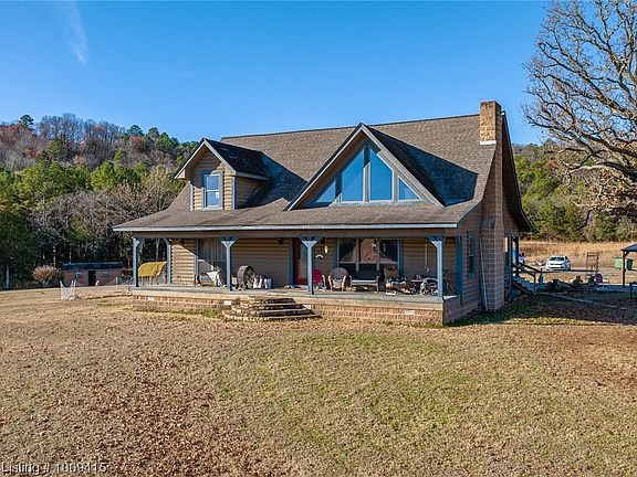 Wow!! What an opportunity to call this place your home! This fine home & 50x60 insulated shop is perfectly situated on 160 acres with highway frontage. Enjoy your morning coffee along with breathtaking panoramic views of Magazine Mountain, the Ouachita's, & the property's pristine pasture from either of the full length covered porches, or your gazebo covered patio! Home features towering vaulted ceilings, beautiful rock wall gas log fireplace, huge windows offering spectacular mountain views, open concept living/dining/kitchen with granite counters & recessed lighting. Bonus loft area overlooking the living room would make a great office/study. Both upstairs & downstairs bedrooms are equipped with full bath and walk-in closets. The 50x60 insulated red iron shop has 2 roll up doors, 1/2 bath, & separate room for an office or storage. both house & shop are wired for a back up generator. The property consists of approximately 1/2 pasture with 2 nice ponds, and is surrounded by wooded land with good atv trails for getting to those deer stands! Bonus: less than 4 miles to Hice Hill Boat launch, offering access to Petit Jean River & Blue Mt Lake.