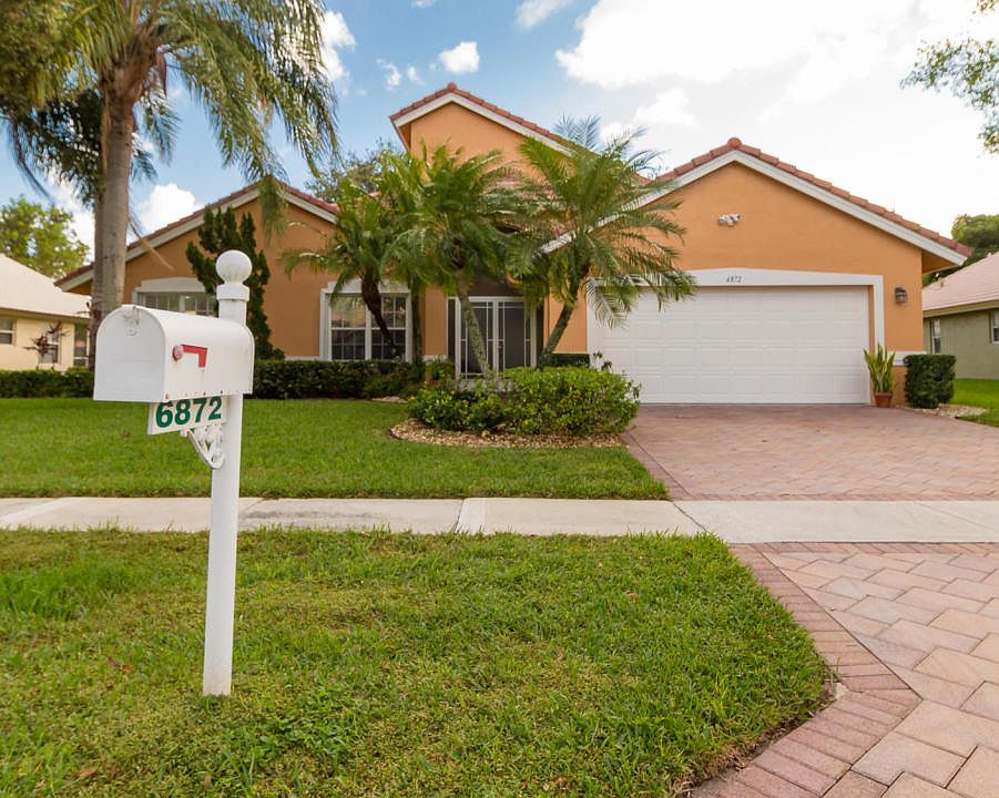 LOCATION! Immaculate 3 BR/2 BA Brentwood model on beautiful lake. Elegant double door screened entry leads to foyer with cheerful, bright open floor plan. Gourmet kitchen w/bay window eat-in area features wood cabinets w/pull-outs, granite, top of the line SS appliances. Sliders from L/R leads to large enclosed A/C patio which opens to magnificent lake views. Master bedroom suite features his & hers walk-in closets. Large Master bath with dual vanities, separate shower and Roman tub. Accord shutters. 3rd bedroom w/French doors being used as den. New A/c and W/H. Accord shutters. Enjoy the Florida lifestyle in the newly refurbished clubhouse with resort style pool and spa, tennis, billiards, fitness center, Sauna, clubs, entertainment. Conveniently located to shopping, dining, beaches