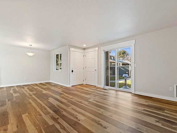 Welcome to carefree living at a great price! Convenient, low maintenance townhome situated in a perfect central location near shopping centers, restaurants, medical care and easy access to the freeway and downtown Boise. This end unit has been wonderfully maintained and is in "move in" condition. Home includes nice sized living space with sliding door leading out to a spacious patio that backs up to a common area. The kitchen includes white cabinets, granite countertops, stainless steel appliances, including a side-by-side refrigerator along with recessed lighting. Upstairs you will find 3 spacious bedrooms with ample closet space and an updated bathroom with granite countertops. Home also had new laminate flooring and trim installed throughout in 2022. This home is one of the few in the development that has 3 bedrooms and a 2-car garage. HOA takes care of the outside maintenance and landscaping, and there is a tennis court onsite for your use.