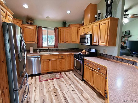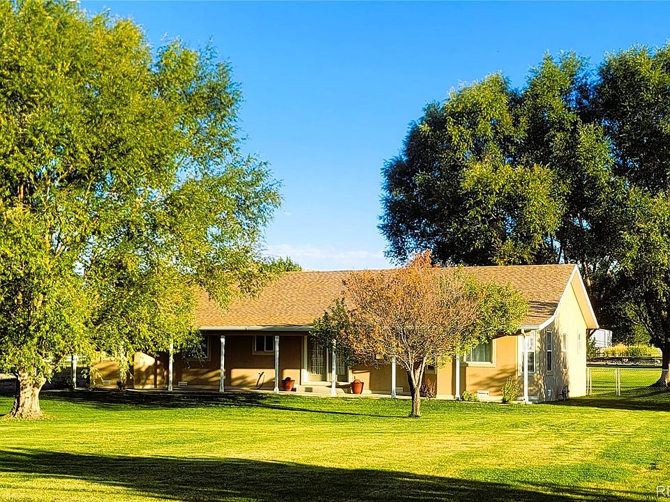 This home is situated on just under 1.3 acres in a rural setting but within Montrose city limits. The home is designed on an open concept with a huge centrally located living room. The master bedroom is also oversized and easily accomodates a king size bed and furnishings. Guest bedrooms are situated at the opposite end of the home and hallways are minimal throughout.....no wasted square footage here! Flooring throughout the home is laminate hardwood. Kitchen and dining room are just off the living room. With exception of the driveway area the grounds are manicured and fully grassed. The sprinkler system keeps everything green and irrigation water is supplied through the HOA.