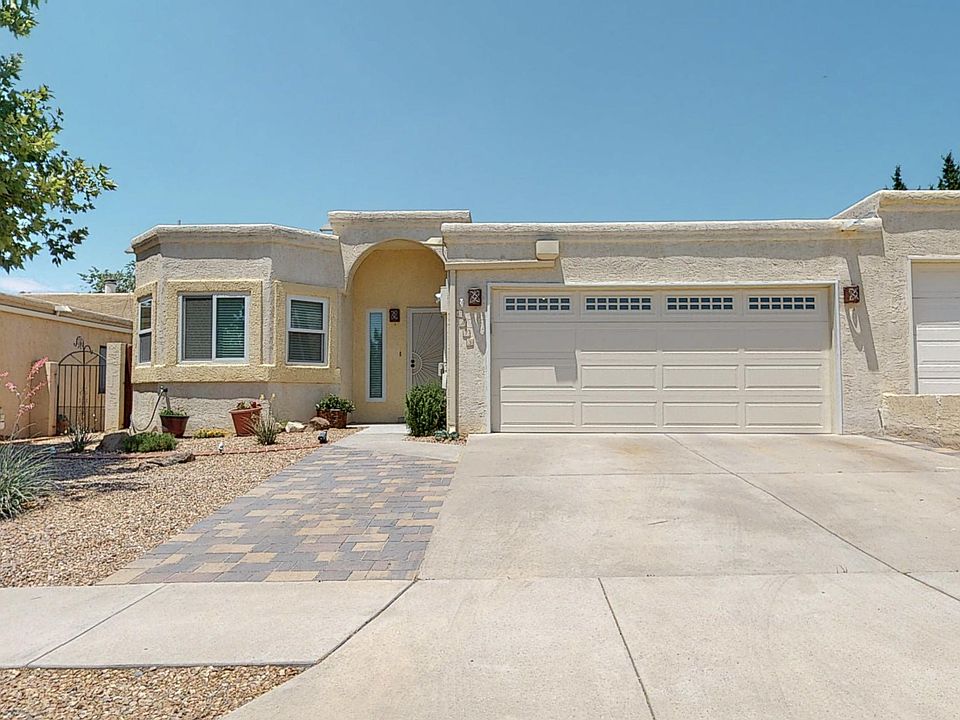 Charming one story townhome in Bear Canyon, great location close to Whole Foods, dining and shopping. Over $65,000 in upgrades! Three bedrooms and two baths with cathedral ceilings, tile and LVT flooring throughout, sunny kitchen with new stainless steel appliances. Spacious master suite with walk in closet...ample room for a study/office space. Refrigerated air, new windows, new furnace, new water heater. A delightful gem in the NE Heights. Virtual tour available!