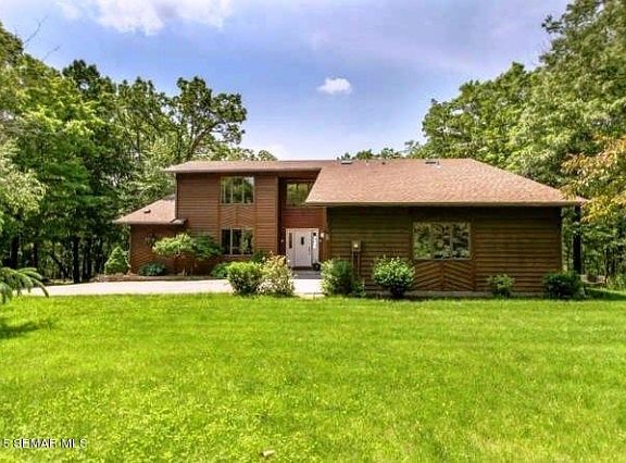 This custom designed 4556 s. ft. home is nestled into a heavily wooded five home cul-de-sac. The newly constructed wrap around deck provides panoramic views including distant Assisi Heights. A dual sided fireplace awaits upon entering the open concept family and living areas. You'll appreciate the vaulted ceilings, large windows, master suite, main floor laundry, huge walk out lower level,