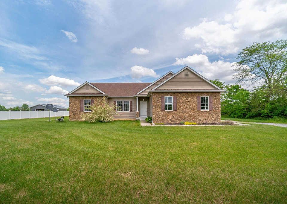 You MUST see this immaculate ranch sitting on 2.3 acres. Built in 2014, this custom-built home features a bright and open floor plan with modern design. The spacious kitchen features stainless steel appliances, granite countertops, a walk-in pantry and oversized island. Enjoy the gorgeous property views out of the incredible dining space. All three bedrooms are large with ample closet space. The owner's suite features an oversized shower with a seat, a soaker tub and walk-in closet. The full, poured basement with tall ceilings is huge -- and just waiting to be finished! First floor laundry room, geothermal heat, new sump pump 2018. Don't miss out on this opportunity to own a nearly-new home in the country!