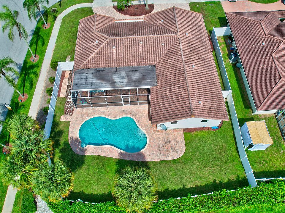A one-of-a-kind one-story, corner-lot paradise nestled in the captivating Terra Tranquila. Close proximity to the thriving Town Centre mall, world-class shopping & dining options,minutes away from sun-kissed beaches and the lively downtown scene. Renovated, Immaculate Uber-clean home with inviting open living spaces. All-impact windows & doors for safety, serenity, and energy efficiency. Primary bedroom is a sanctuary of calm and seclusion away from 3 additional bedrooms that provide space for families and those seeking peace. Fenced in privacy, large screened in patio to entertain. Don't let this opportunity pass you by. This is your chance to seize this opportunity to embrace a life of convenience, elegance, and serenity. Make this remarkable corner-lot pool home your very own today!