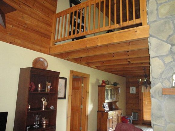 You will love this home and it will love you back.Beautiful rustic charm! Square log home. Country setting in small community. A majestic stone fireplace,from floor to cathedral ceiling, as it directs your eyes to the loft. Absolutely stunning! Beams throughout remind you of the long reputation, for durability, and log walls have a good insulation value. Quaint warm kitchen all appliances stay. Both baths have showers master has whirlpool tub. Sitting on 5.17 acres. Shop has concrete floor and loft. Yard fenced with remote gate concrete driveway, security for your family and pets, Pet entry door.Close I-40, Marina, state park. Three bedrooms, recreation room in loft.Three porches.