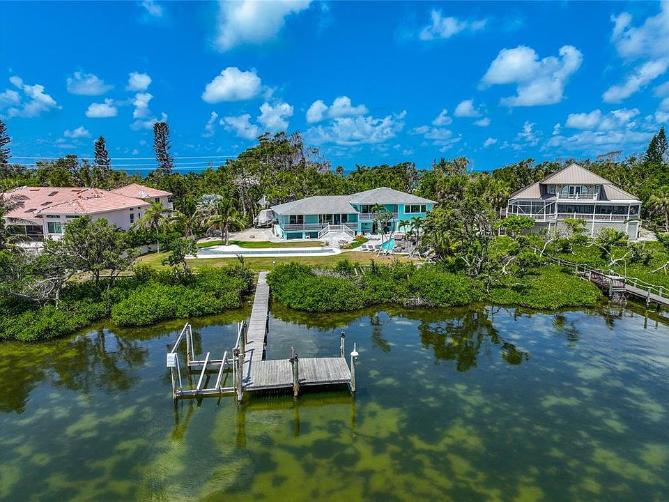 One or more photo(s) has been virtually staged. This extraordinary island property offers a rare opportunity to own a piece of paradise in one of Florida's most sought-after coastal destinations. Nestled on a pristine stretch of Manasota Key, this private estate boasts unparalleled panoramic views of Lemon Bay. From the comfort of your deck, or sitting on the dock, indulge in the captivating water vistas that stretch as far as the eye can see. Ready to hit the beach? Conveniently located just a short distance across the street is a deeded beach access allowing you to enjoy the white sand beaches and tranquil waves at your leisure. The exterior of this beautiful island home is a testament to life on a Florida key. The landscaped gardens and mature trees are illuminated to complement the property. The outdoor oasis has a heated swimming pool featuring a grotto, fire accents, and a soothing waterfall. The backyard amenities continue to impress with an outdoor shower, shuffleboard court, a white sandy play area, and a cozy fire pit. You'll have endless opportunities for outdoor enjoyment and entertainment. The private dock sits in front of an approx. 88ft wide sea wall offering easy access for your boat, kayaks, and paddleboards! It extends about 300ft directly into Lemon Bay. The water depth at low tide is approx. 4ft deep and there is ample space to tie off. The dock is also in the process of getting a brand new Creative Marine lift that will hold a 10,000 lb boat lift, water, and electricity. The interior underwent a complete remodel in 2020, showcasing elegance and top-notch craftsmanship. The large chef's kitchen and dining room with views of Lemon Bay is an entertainer's dream. This space is great for gathering friends together to create your culinary masterpieces, the kitchen features a large, granite topped island, stainless steel appliances and a walk-in pantry. With 3 bedrooms, 3.5 bathrooms, indoor and outdoor living space, this home offers an extraordinary amount of space for entertainment and relaxation. In addition to the bedrooms, a bonus room is currently set up as a theater room, complete with programmable remote blinds, surround sound, and acoustics. Enjoy an immersive cinematic experience within the comfort of your own home. The primary suite is a haven of luxury, featuring a private balcony overlooking Lemon Bay. Escape to this bedroom retreat to unwind and embrace the beauty of your surroundings. The spacious primary bedroom boasts intricate details, including backlit pre-lit onyx countertops with a drink fridge, heated bathroom floors, jetted spa-tub, walk-in shower with a rain showerhead and four body shower heads, plus dual vanities. The primary suite also offers a large walk-in closet with custom shelving system and an additional closet for ultimate convenience. This residence is equipped with wireless, Bluetooth connected devices. Control the waterfall, pyro flames atop the waterfall, surround sound speakers inside and outside, lighting, security system, blinds, and more with ease. This is a once-in-a-lifetime opportunity to embrace coastal living at its finest. Immerse yourself in the serenity of this extraordinary property, where every detail has been carefully curated to provide an unparalleled living experience. Enjoy the breathtaking views, indulge in outdoor recreation, and savor the luxurious comforts of this exquisite waterfront retreat. Take the opportunity to watch the video and use the 3D tour feature for this home right now.