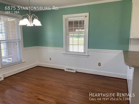Surround yourself with the serene charm of Farmville, NC, in this delightful 3-bedroom, 2-bathroom home at 6875 Stantonsburg Rd. Boasting 1,456 square feet of living space, this residence offers a perfect blend of comfort and style, ideal for anyone seeking a peaceful retreat. Step inside to discover the gleaming hardwood floors that flow throughout, adding warmth and elegance to every room. The spacious living areas are perfect for entertaining guests or enjoying cozy evenings at home. Each of the three bedrooms provides a tranquil escape, while the two full bathrooms ensure convenience and privacy for all occupants. The open and airy layout invites natural light to fill the space, creating a welcoming atmosphere you'll love coming home to. Located in the heart of Farmville, this home offers easy access to local amenities while maintaining a sense of rural tranquility. Whether you're savoring your morning coffee on the porch or hosting a weekend barbecue in the backyard, this property is designed for relaxation and enjoyment. Don't miss the opportunity to make this charming house your new home and experience the best of North Carolina living.Ample Parking First Floor