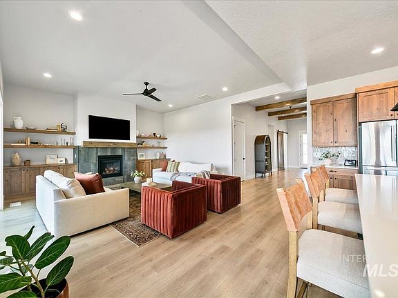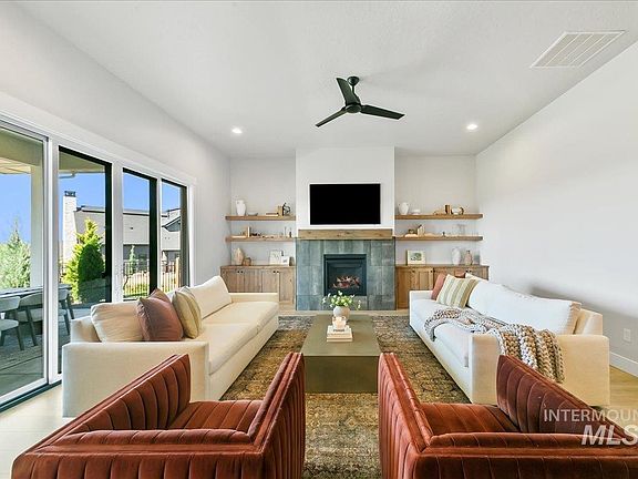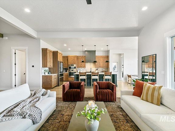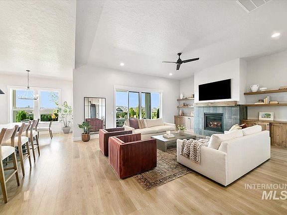 Seller is offering a $20,000 Incentive with a reasonable Offer. No rear neighbors- luxury, comfort, and privacy, in this 2,250 sq. ft. home. Soaring 11-foot ceilings, an open floor plan with stained cabinetry, hard plank floors, and a built-in office workspace that can easily be converted into a full included tech room. The chef’s kitchen boasts a Thermador cooktop, walk-in pantry, and premium finishes. The oversized 3-car garage features an epoxy floor, ceiling storage racks, and EV setup. A $5,000 reverse osmosis and water softener system enhances convenience. Step outside to a landscaped backyard with a firepit, covered patio, and pond views, offering privacy. HOA-maintained green spaces provide additional privacy and space for outdoor activities. The Legacy Community offers resort-style pools, a 3-hole golf course, walking trails, streams, and a large park with seasonal events. Just 10 minutes from stores and 25 minutes from the Boise Airport, this home combines luxury with accessibility.