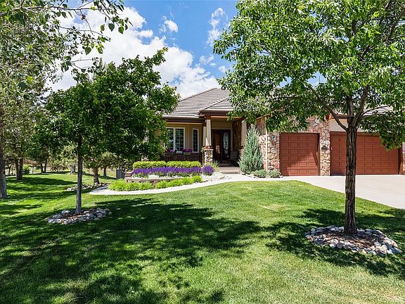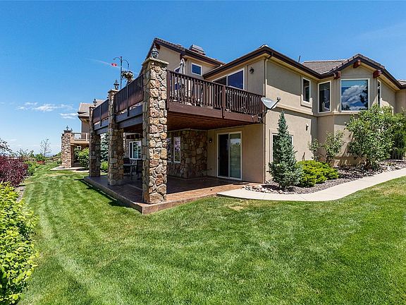 This is what Colorado living is all about, gorgeous, unobstructed front range VIEWS where the buffalo roam, breath taking sunsets to be enjoyed by family and friends. Take advantage of this low maintenance life style, the HOA takes care of mowing/snow removal right up to your door and more! The foyer welcomes you to an open floor plan, wood vaulted ceiling, Brazilian cherry hardwood floors, windows perfectly framing mountain views from almost every room! Great room with inviting fireplace, New tile, New carpet, New plantation shutters. The chef will enjoy a gourmet kitchen, custom cabinets, center slab granite island, Wolf double ovens, Wolf 5-burner range, SubZero refrigerator. Formal dining room has New custom built-in buffet, New wine cooler/bar refrigerator. Main floor master suite, master bath w/heated floors! Main floor study w/built-in cabinetry. Sprawling lower level has New granite bar top, New ice maker, wine cellar, family/billiards room, three spacious guest suites.