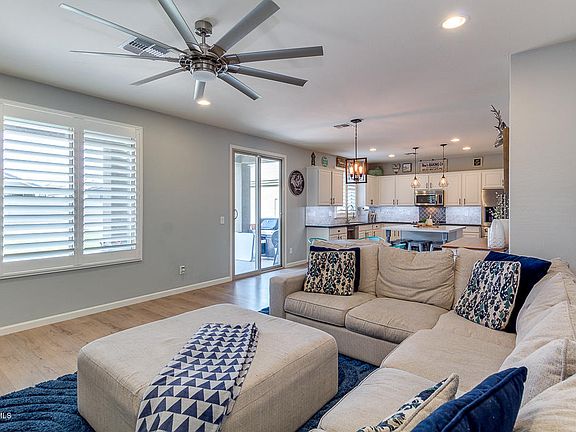 Unbelievable two-story property is now on the market in Peoria! This home has it all! Starting with a beautiful low maintenance desert front landscaping. Living is easy in this perfectly spaced home complete with 3 bed, 2.5 bath, designer paint tones, plantation shutters, cozy loft, den great for an office and luxurious light fixtures. Gourmet eat-in kitchen has everything you need; recessed/pendant lighting, stainless steel appliances, white cabinetry with crown molding, large centered island with breakfast bar, quartz counter-tops, large pantry, and marble back-splash. Amazing master bedroom gives you a lavish full bath with double sinks, separate tub, and step-in shower. Gorgeous grassy backyard with covered and paver patio is perfect for your gatherings. Nothing to do here but unpack