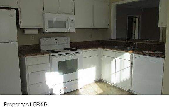 Great home 5 min from Fort Bragg. Home was renovated a couple of years ago. 3 bedrooms, 2 baths and single car garage, carpet and vinyl flooring, central heat/air, range, refrigerator, microwave, dishwasher, washer and dryer connections, kitchen/dining area, fireplace, ceiling fan(s), blinds, smoke detectors, carbon monoxide detector and patio.