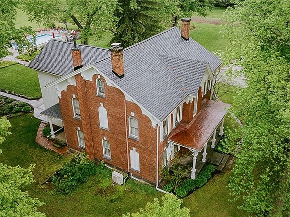 Live Auction with Online Bidding Available on Real Estate. Sellers inherited their family estate. ABSOLUTE AUCTION, all sells to the highest bidder on location. ONLINE BIDDING BEGINS WEDNESDAY, JUNE 11, 2025, at 10:30 AM, and AUCTION LIVE ON-SITE BIDDING WILL BEGIN SATURDAY, JUNE 14, 2025, at 10:00 AM REAL ESTATE SELLS AT 10:30 AM. The property features a large century brick Victorian home with a long farm lane leading you to a tranquil setting. Featuring a modern 30' x 50' steel pole building with electric and two overhead garage doors. Early barn with workshop area having furnace, half bath, and original timbers in livestock area. Classic outdoor entertainment area of yesteryear boasting an in-ground pool 20' x 40', covered patio 15' x 34', summer kitchen area, two half baths, wood-fired oven, and nicely landscaped. The Victorian home has 3,784 SF of living area. Home features include four bedrooms, 2 full baths, and 2 half baths. Large family room with fireplace, den with fireplace, impressive, oversized dining room with walkout to side porch, updated kitchen with center island, laundry area, and walkout to screened rear porch. Grand two-story foyer with extra-tall front double doors, elegant staircase, and original curved banister. Ornate woodwork, soaring ceilings, arched doorways, wide baseboards, crown molding, wood floors, and updated carpeted areas. Walk-up third floor with two rooms and a half bath. Full basement with high ceilings and walkout. Well water and septic system. Enjoy outdoor living with peaceful views and garden areas. The 8.10 acres of land are level at the road, then the farm lane leads up to the home and buildings. Exciting opportunity. Updates, House shingle roof new April 2025, Metal roof on large barn new 2022, Metal siding and roof plus new windows on garden shed 2024, Saltwater pool system new 2022, New kitchen island counter top 2023. Home will be open for inspections at 8:30 am on auction day, or by appointment. Plan to attend!