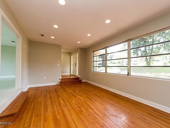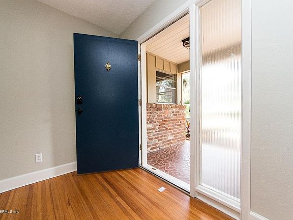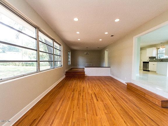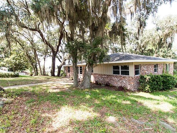 Mid century feel in this brick ranch style home located on a large corner lot with river views surrounded by majestic oak trees. Wood floors in the dining and formal living rooms, polished terrazo floors in the family room & kitchen. New cabinets, granite tops, & stainless appliances. updated baths and new carpet. Back porch is an elevated balcony with stairs leading into the back yardThere is a public boat ramp, dock, playground and community pool within walking distance.