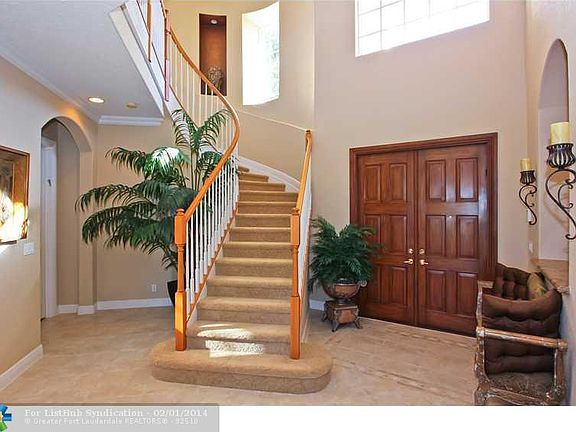 Magnificent one of a kind - 5 Bedroom, 4 Bath pool home on wide water in Bayside Estates section of Parkland Isles. A few of the many features are: Crown molding. Surround sound. Upgraded kitchen w/42" wood cabinets, two sinks, double oven, center island, granite counters, and all new stainless steel appliances. Two new A/C units. New water heater. Accordion hurricane shutters. Dual staircases. Screened patio. French doors.