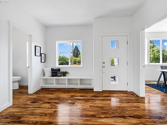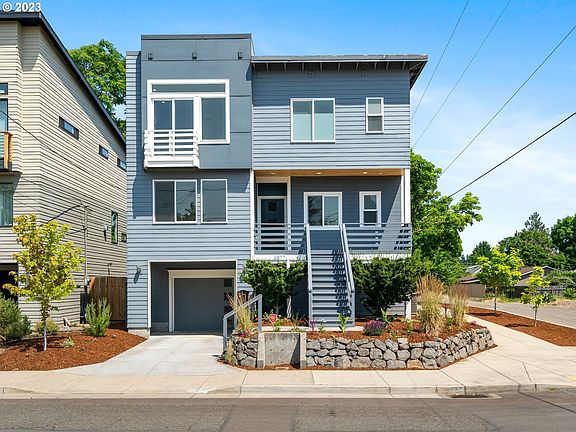 As you step up to the front door of this 2017 custom, contemporary home, you'll be greeted with its large front deck that sits high above the yard providing a lovely spot for summertime morning coffee and evening relaxation. This gorgeous home is move-in ready and was designed with the Portland urban-lifestyle in mind. Enter and you are welcomed by an open floor plan with floating Acacia laminate floors, custom built-in bench with shoe storage, multiple custom built-ins throughout and a gas fireplace in the spacious living room. The office/den/4th bedroom is nicely located on the main level. The sleek kitchen boasts custom white cabinets, walk-in pantry, quartz countertops, cook's island and stainless steel appliances. Adjacent to the kitchen sits the dining room with access to the roomy back deck for outdoor dining and grilling. The generously-sized en suite primary bedroom includes a large walk-in closet, slider with Juliet balcony and spa-like bathroom with double sinks, soaking tub and large walk-in shower. The laundry room is conveniently located on the third floor alongside the bedrooms. A generously-sized bonus room is located off the oversized one-car garage. The home is equipped with a 95%+ high efficiency HVAC system with central air conditioning. The backyard is fully fenced. Step outside and take a stroll or bike ride to Fat Cupcake, Space Monkey Coffee, Portland Mercado, Hometown Pizza, Mt Scott Pub, Putter's Bar and Grill and the Mt Scott Community Center. And the neighboring Woodstock shops, pubs and eateries are within proximity to the home. One of the sellers is a licensed Realtor in Oregon. OPEN HOUSE Saturday, July 8th and Sunday, July 9th from noon till 3:00.